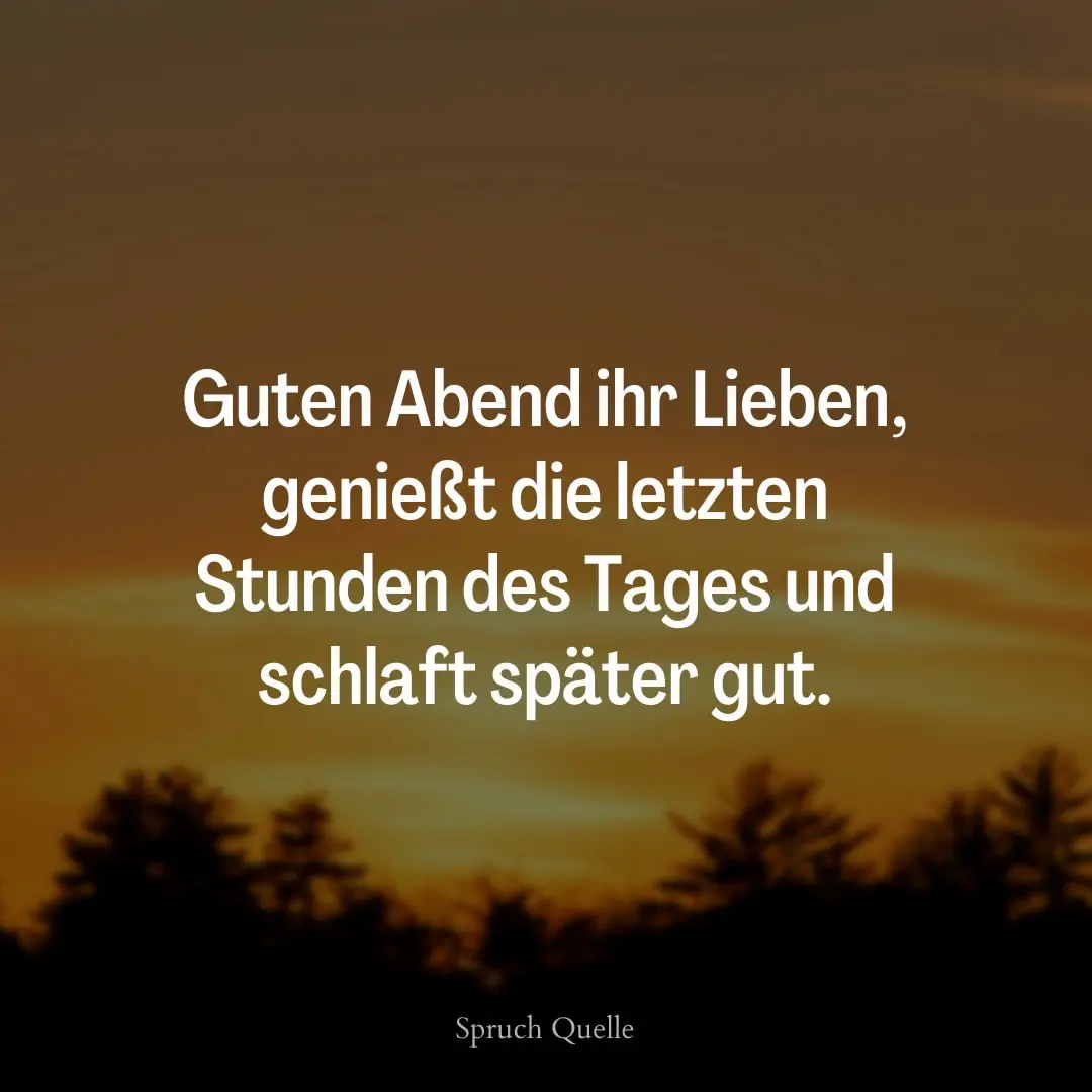 Guten Abend ihr Lieben, genießt die letzten Stunden des Tages und schlaft später gut. Link: Code für Blogs: Code für Foren: Schönen Abend Sprüche