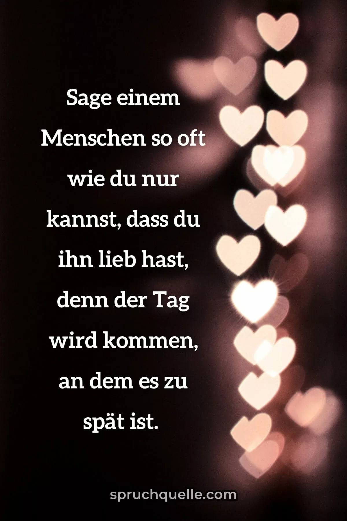 Sage einem Menschen so oft wie du nur kannst, dass du ihn lieb hast, denn der Tag wird kommen, an dem es zu spät ist. Link: Code für Blogs: Code für Foren: Liebe Sprüche