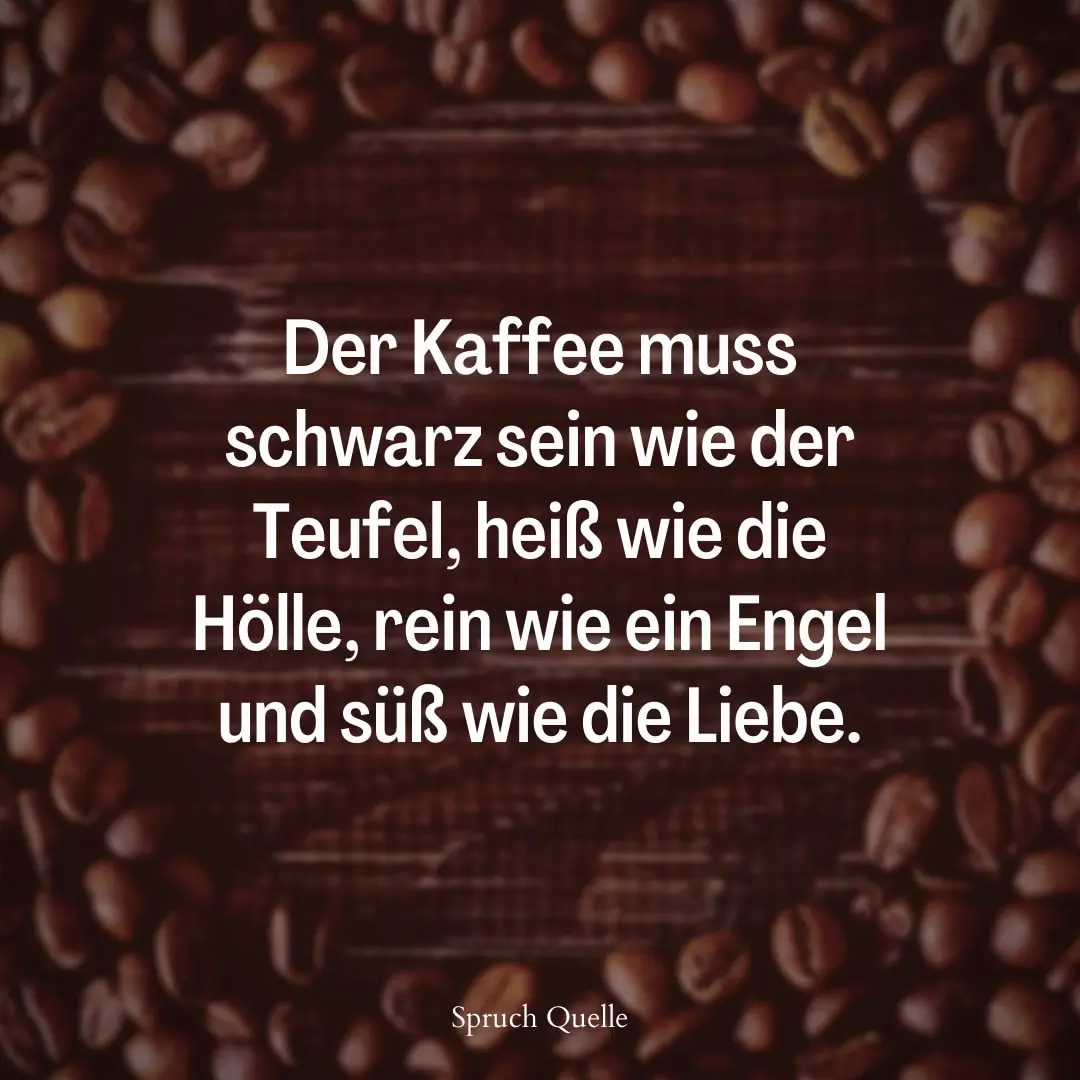 Der Kaffee muss schwarz sein wie der Teufel, heiß wie die Hölle, rein wie ein Engel und süß wie die Liebe. Link: Code für Blogs: Code für Foren: Kaffee Sprüche